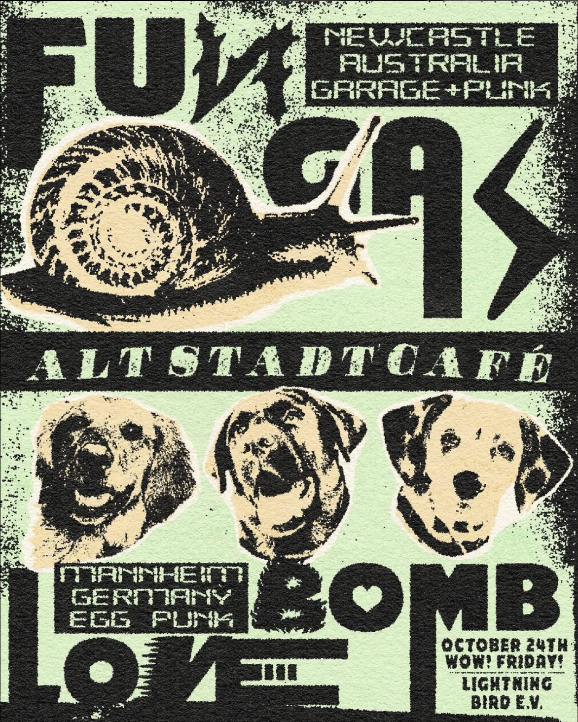 FUNGAS aus Newcastle (also Australien nicht Geordie-Town!!) fallen in die Herzogstadt ein und schleppen ihren Mix aus Garage, Punk, Rock’n’Roll und Psychedelic nach Burghausen. Natürlich geben wir euch erneut die Qualitätsgarantie, denn ihr wisst ja: Lightning Bird und australische Bands – A never ending love story! 🏴☠️
